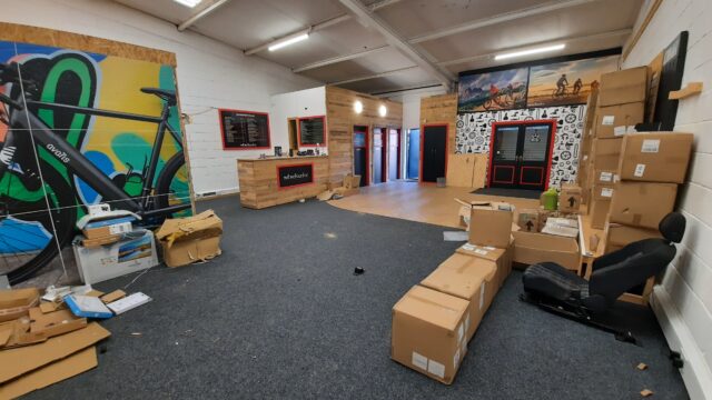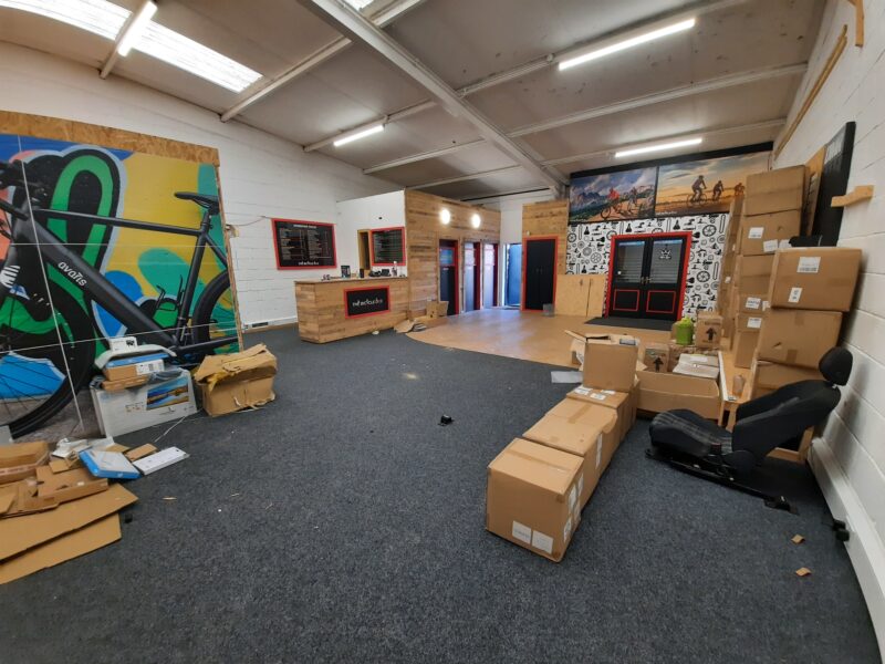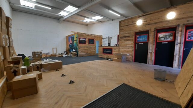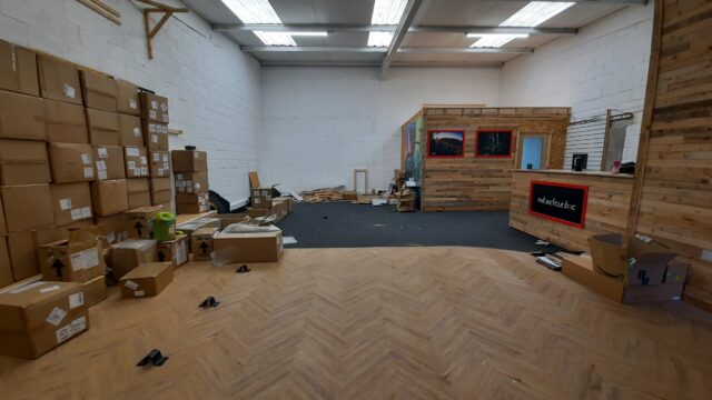 - Open plan warehouse with reception and private offices with dado trunking, LED lighting, modern kitchenette and WC facilities.