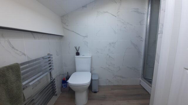 - Finished to an excellent standard featuring contemporary wood effect herringbone flooring, LED lighting, modern kitchenette and shower facilities, and a stylish rendered frontage.