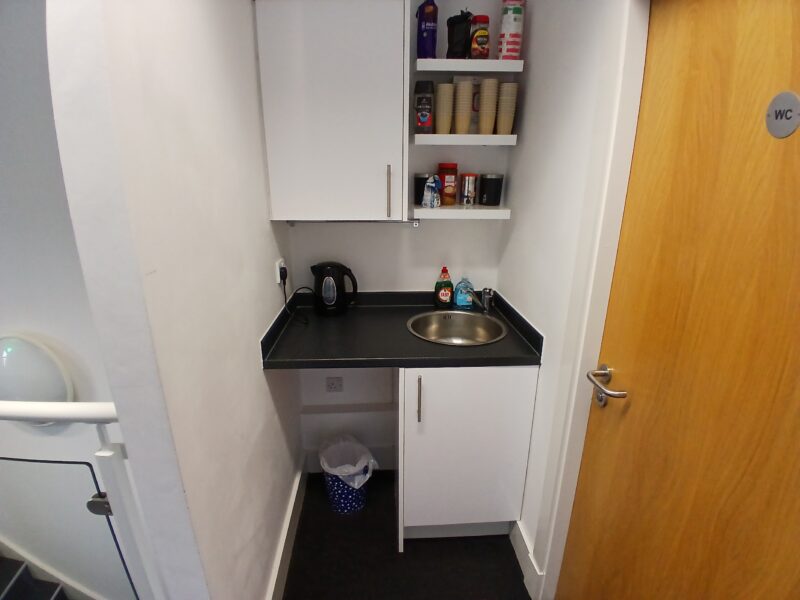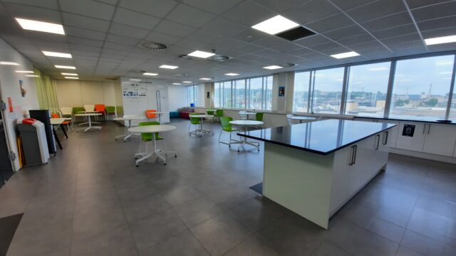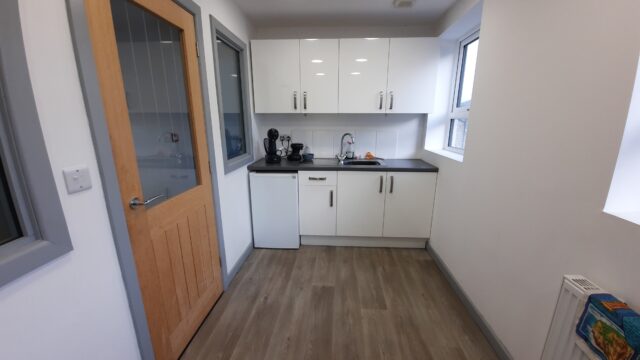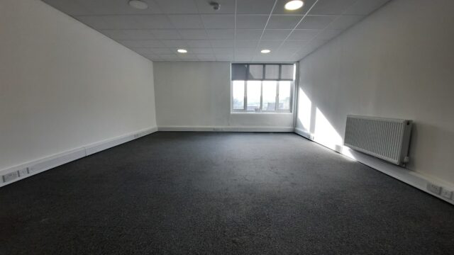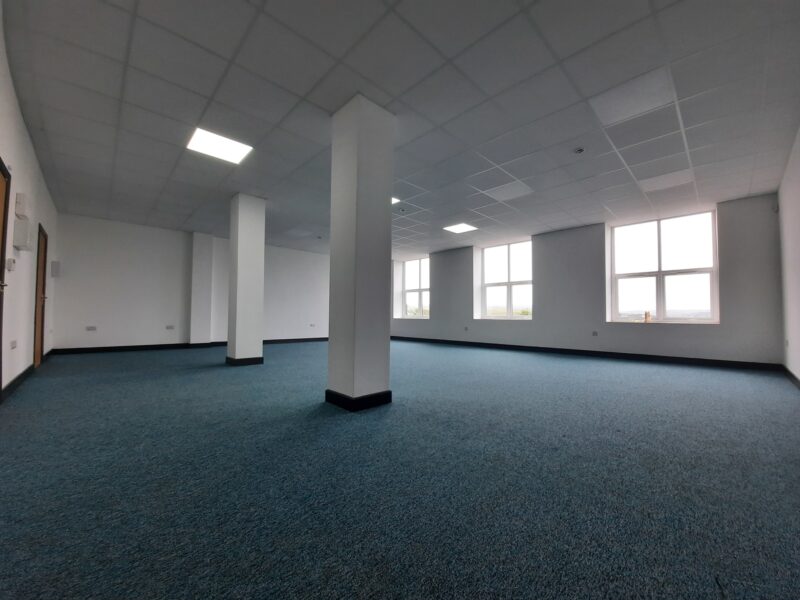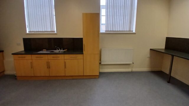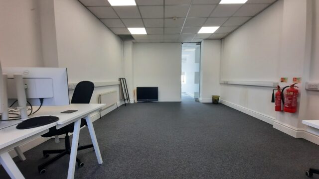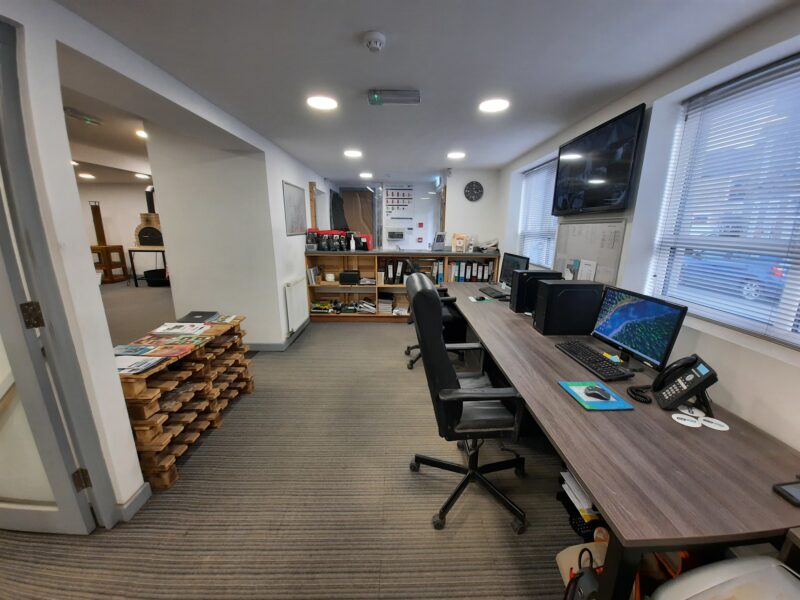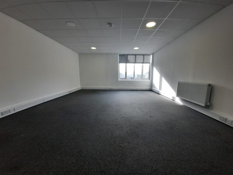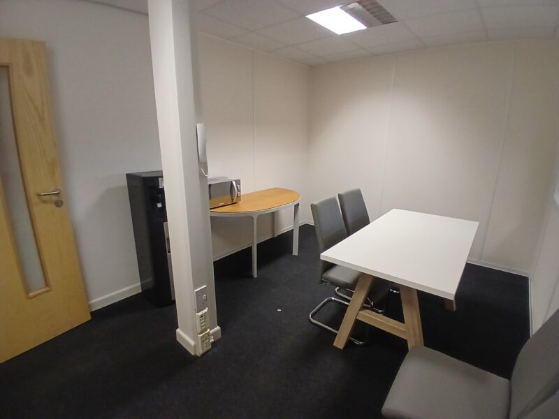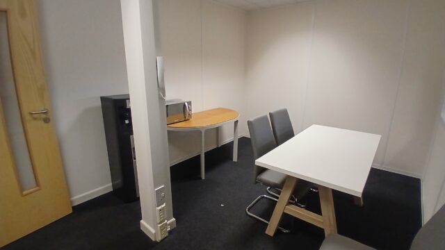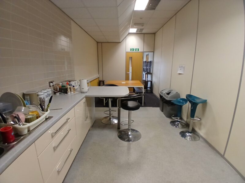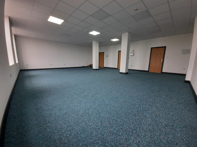 - Modern office space featuring suspended ceilings, LED lighting and modern communal kitchenette and WC facilities.