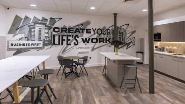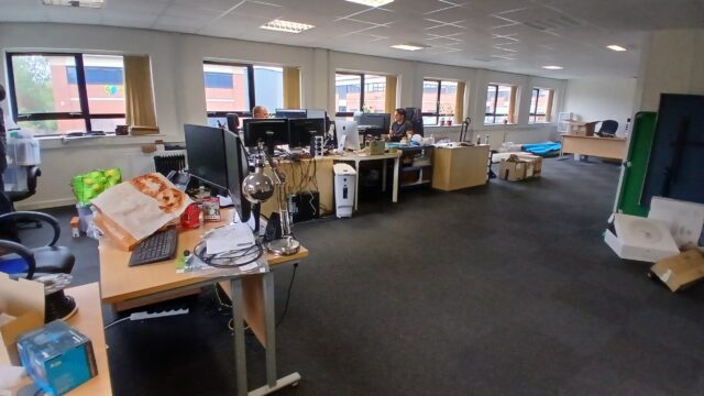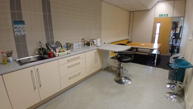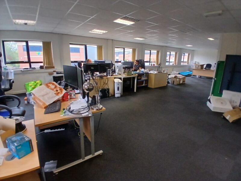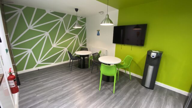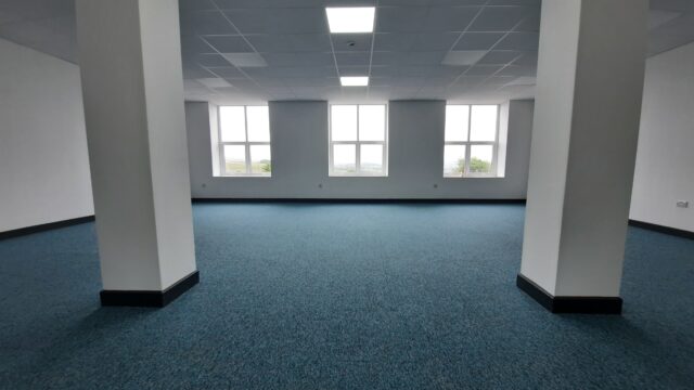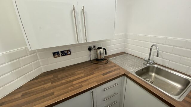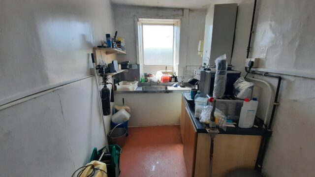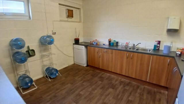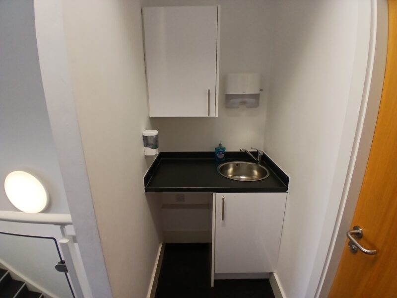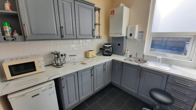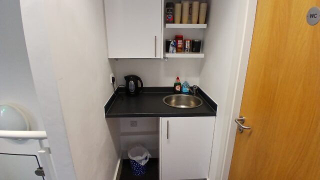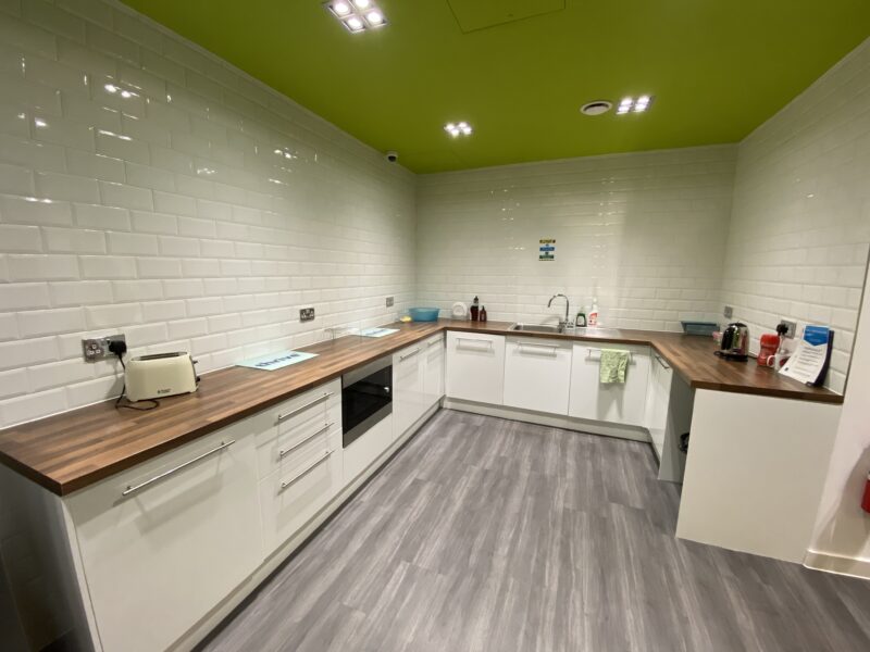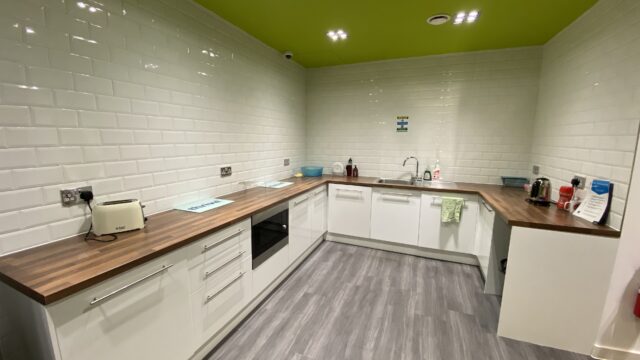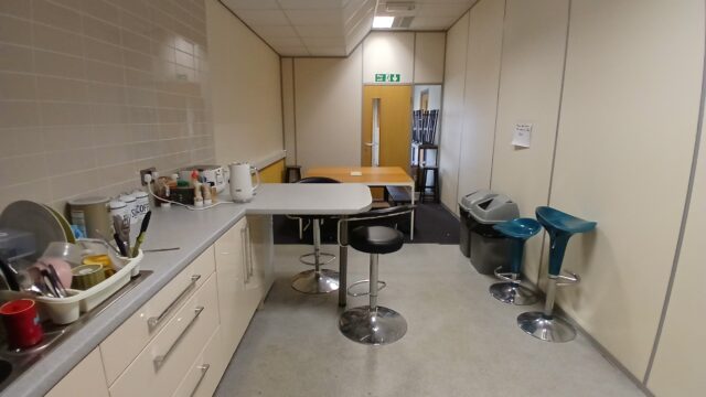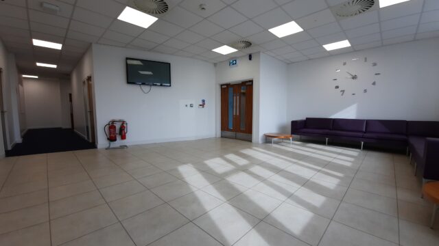 - Modern office space featuring suspended ceilings, LED lighting and modern communal kitchenette and WC facilities.