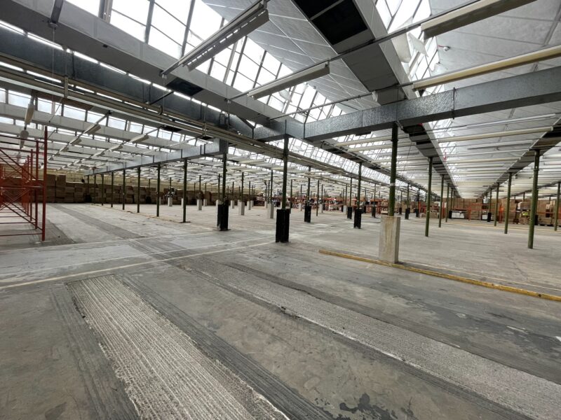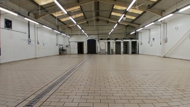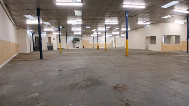 - Former bakery facility comprising front loading section and open plan warehouse.