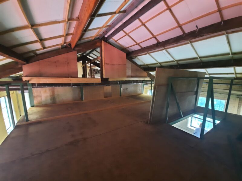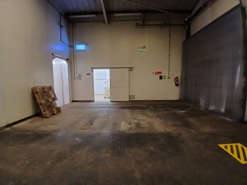 - Industrial space divided into two sections: a large open plan garage and a secondary garage with a kitchenette, each section with its own office and WC facilities.