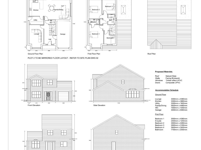 - Indicative designs proposed for a detached, two storey 5 bedroom dwelling.