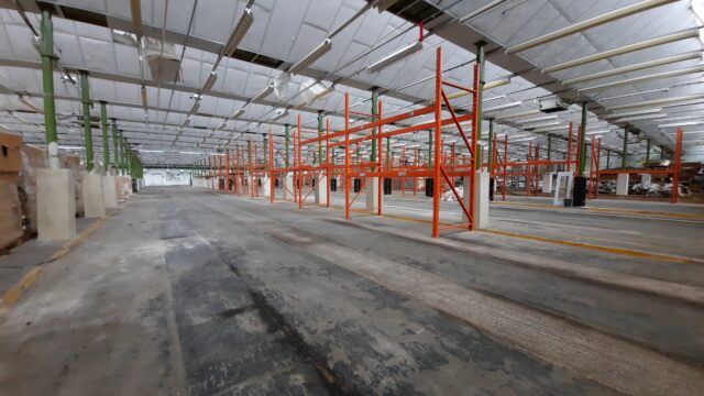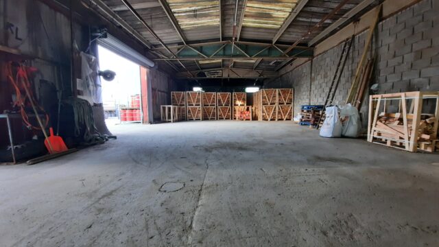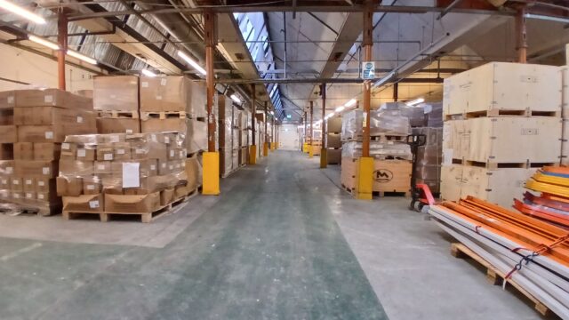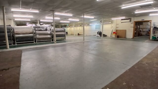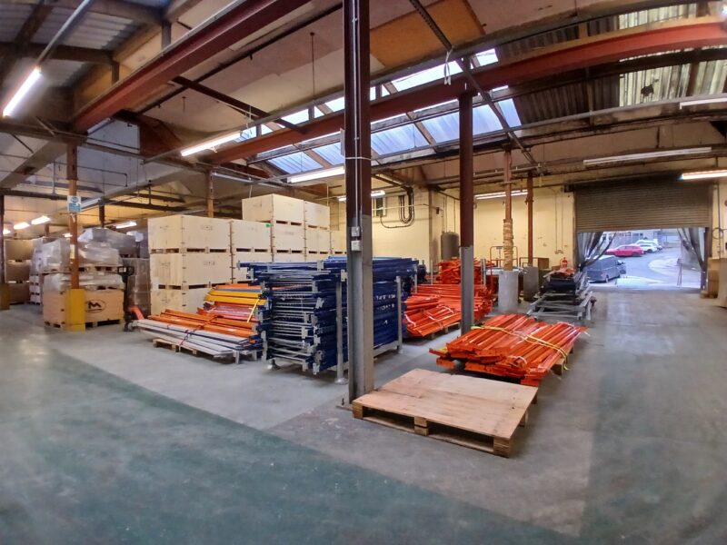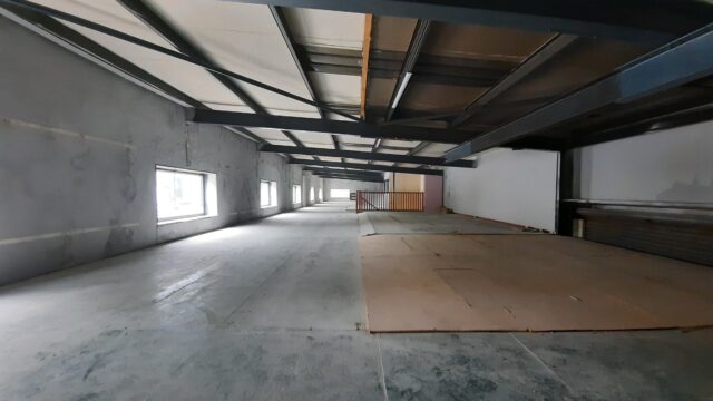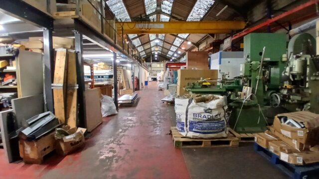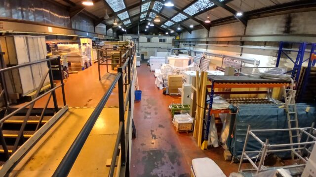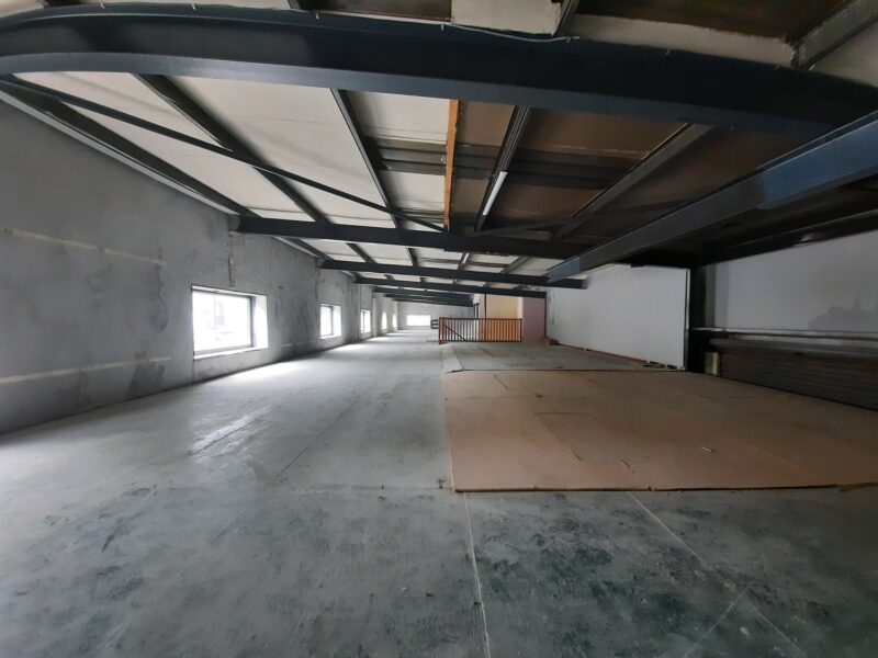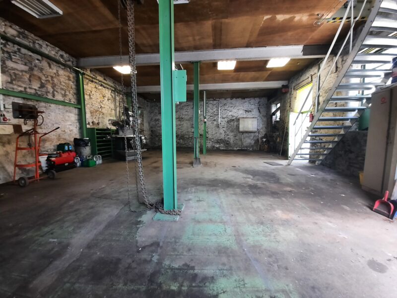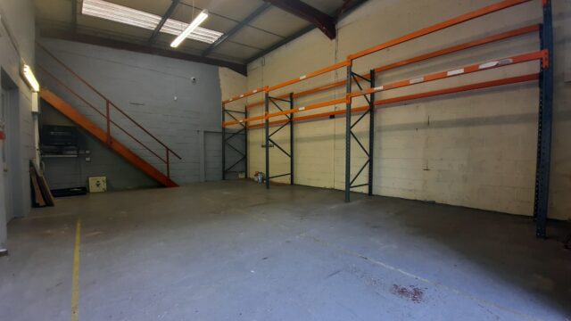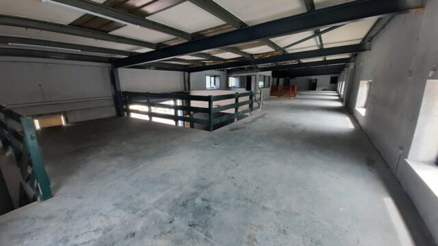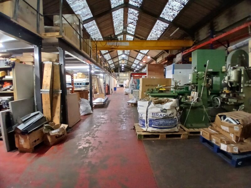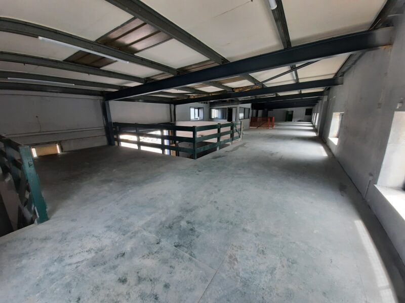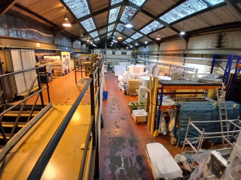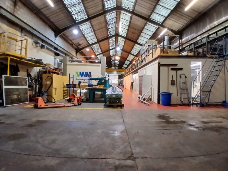 - Main facility comprising high-bay warehouse equipped with a dedicated loading bay, workshop, showroom, and mezzanine storage.