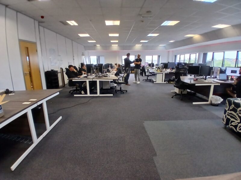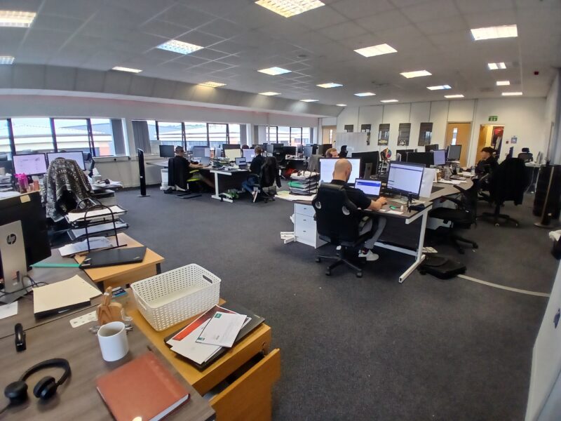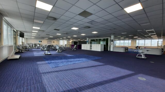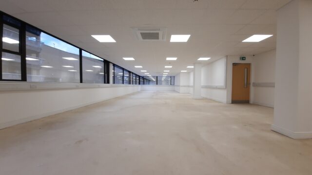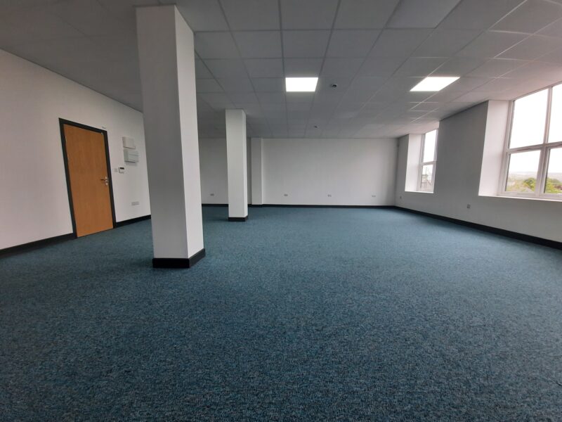 - Fitted to an extremely high standard including large open plan offices together with fully glazed private offices, quality canteen and WC facilities.