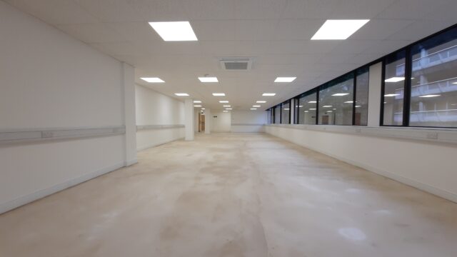 - Refurbished open plan accommodation with air conditioning, perimeter dado trunking, suspended ceilings with LED lighting and new kitchenette facilities.
