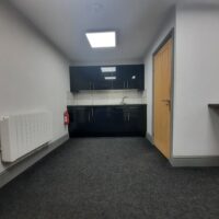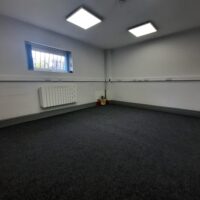- Open plan warehouse with reception and private offices with dado trunking, LED lighting, modern kitchenette and WC facilities.
