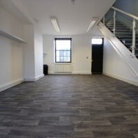A stunning stone-built office building located within the historic Weavers' Triangle, a prominent Heritage Trust redevelopment. Recently converted, the property forms part of Slater Terrace Business Centre, a Grade II Listed complex which is home to a number of businesses. The accommodation is arranged over two floors with its own private entrance. The ground floor offers an open-plan layout with windows to both the front and rear, complemented by an open staircase leading to the first floor. The upper level benefits from a striking full-height window and balcony, providing excellent natural light, along with a kitchenette, WC, and storage cupboard. The offices are finished to a high standard with carpeting throughout, electric radiators, specialist lighting, glazed staircase paneling, skirting board trunking, feature sash windows and a balcony to the rear overlooking the Leeds and Liverpool Canal. Externally, the property benefits from two designated parking spaces within a secure courtyard.Location