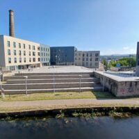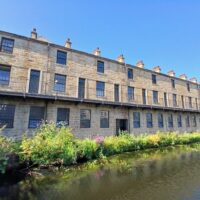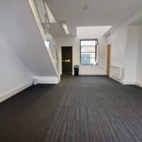 A stunning stone-built office building located within the historic Weavers' Triangle, a prominent Heritage Trust redevelopment. Recently converted, the property forms part of Slater Terrace Business Centre, a Grade II Listed complex which is home to a number of businesses. The accommodation is arranged over two floors with its own private entrance. The ground floor offers an open-plan layout with windows to both the front and rear, complemented by an open staircase leading to the first floor. The upper level benefits from a striking full-height window and balcony, providing excellent natural light, along with a kitchenette, WC, and storage cupboard. The offices are finished to a high standard with carpeting throughout, electric radiators, specialist lighting, glazed staircase paneling, skirting board trunking, feature sash windows and a balcony to the rear overlooking the Leeds and Liverpool Canal. Externally, the property benefits from two designated parking spaces within a secure courtyard.Location