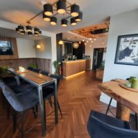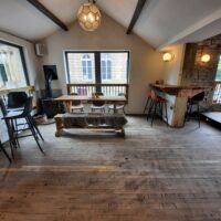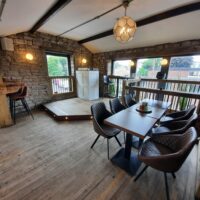 - Dual air conditioning / heating, a multi-fuel stove, feature exposed stone walls, and modern timber paneling.