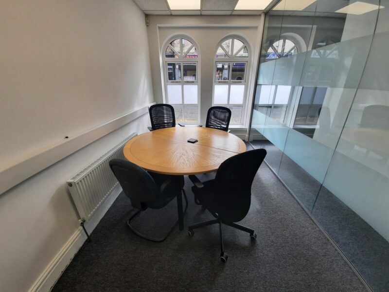 - Layout featuring a contemporary reception, stylish private offices, glazed meeting rooms, staff room, breakout space, fitted kitchen, and WC facilities.