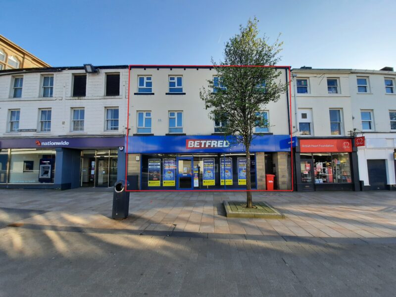 A highly prominent three storey, mixed use investment premises located in the heart of Burnley town centre. The ground floor is let to Done Brothers (Cash Betting) Limited T/A Betfred by way of a 5 year Full Repairing and Insuring Lease expiring on 27th October 2029 at a current passing rent of £20,625 per annum. A long standing Tenant, Betfred have been in occupation for over 20 years and we understand have completed a recent full renovation of the ground floor. The first and second floors comprise a series of open plan and private offices with kitchenette and WC facilities. The offices are self contained, with independent access from St James Street and benefit from gas central heating and suspended ceilings. The office accommodation has been painted and decorated throughout and may suit residential conversion subject to the appropriate planning consent.Location