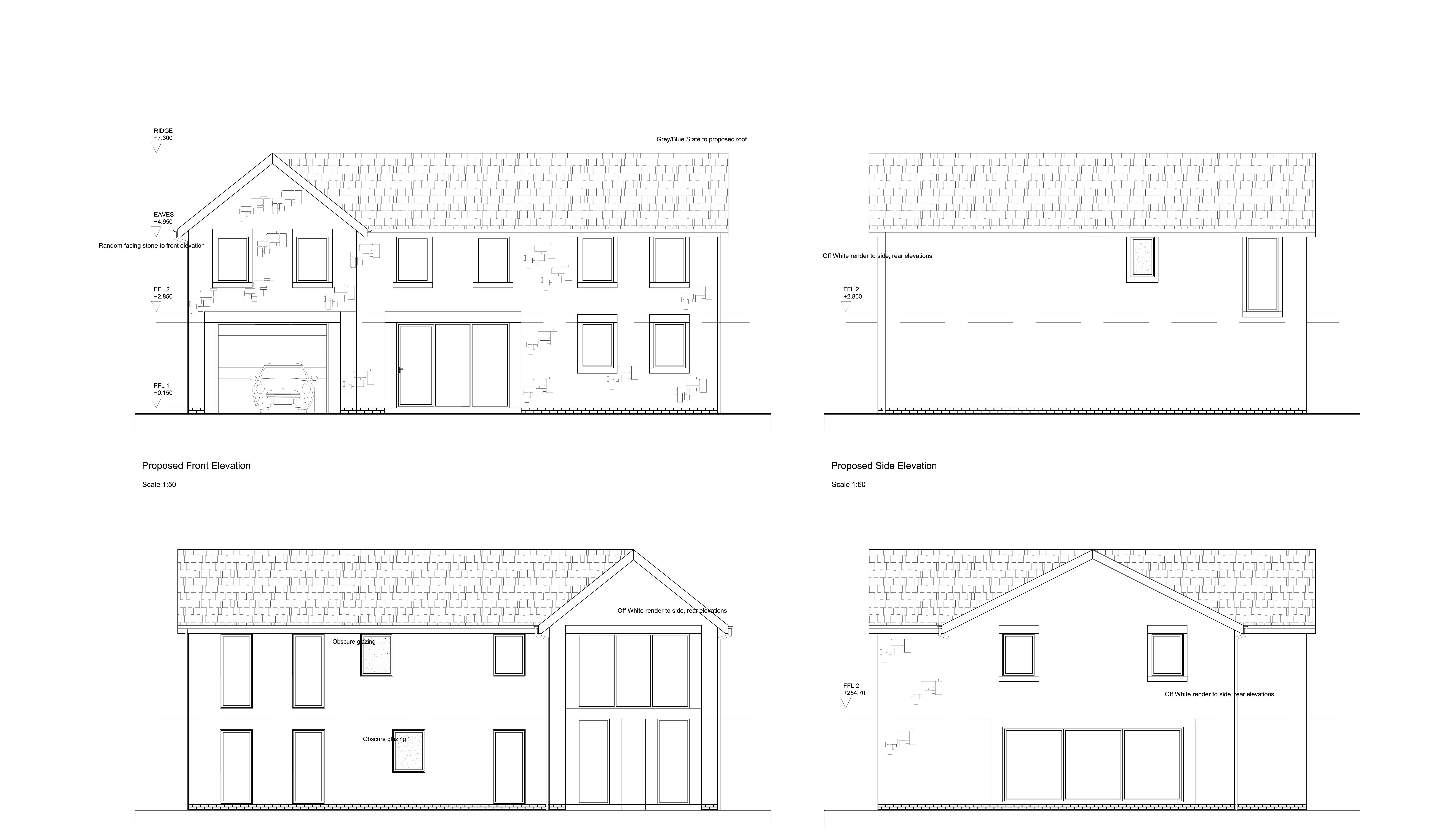 - Indicative designs proposed for a detached, two storey 5 bedroom dwelling.