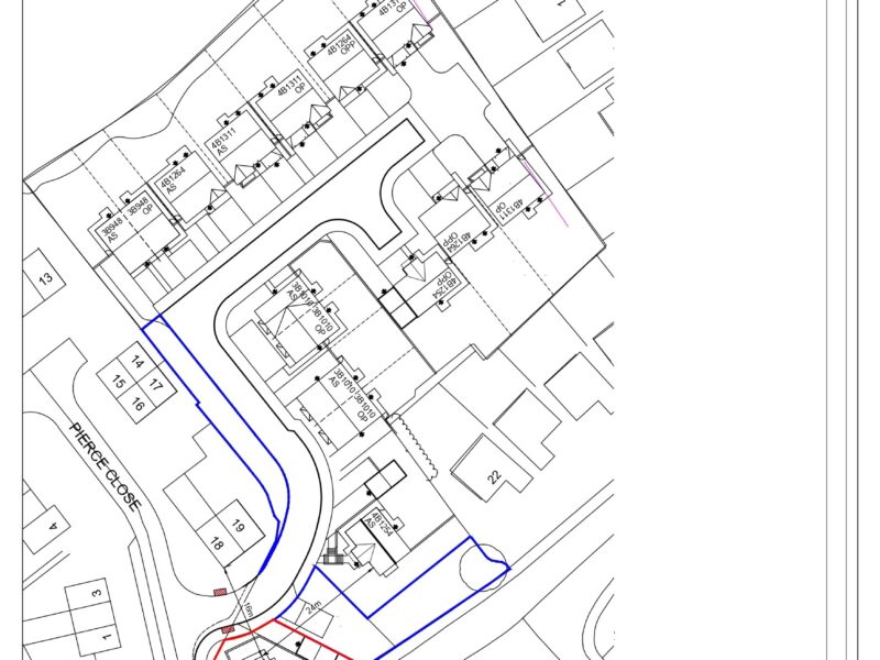 An elevated residential building plot located at the entrance of Pierce Close. Planning permission was granted in June 2023 (Reference No. FUL/2022/0541) for the erection of a spacious, detached 3 bedroom dormer bungalow with a garden and driveway, providing parking for 2 vehicles.