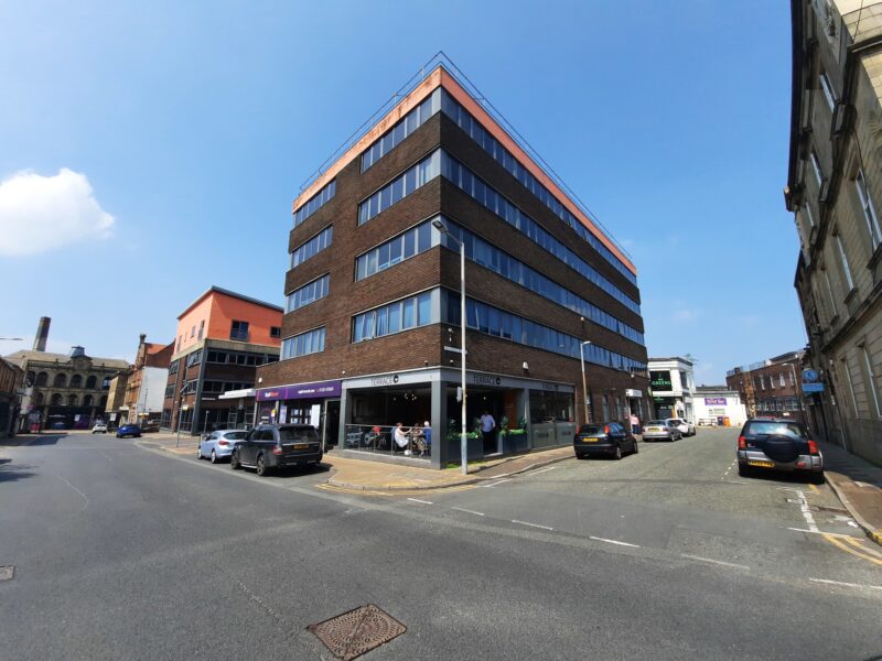 The property is located on the corner of St James Row and Hargreaves Street in the centre of Burnley within a prestigious serviced office facility.